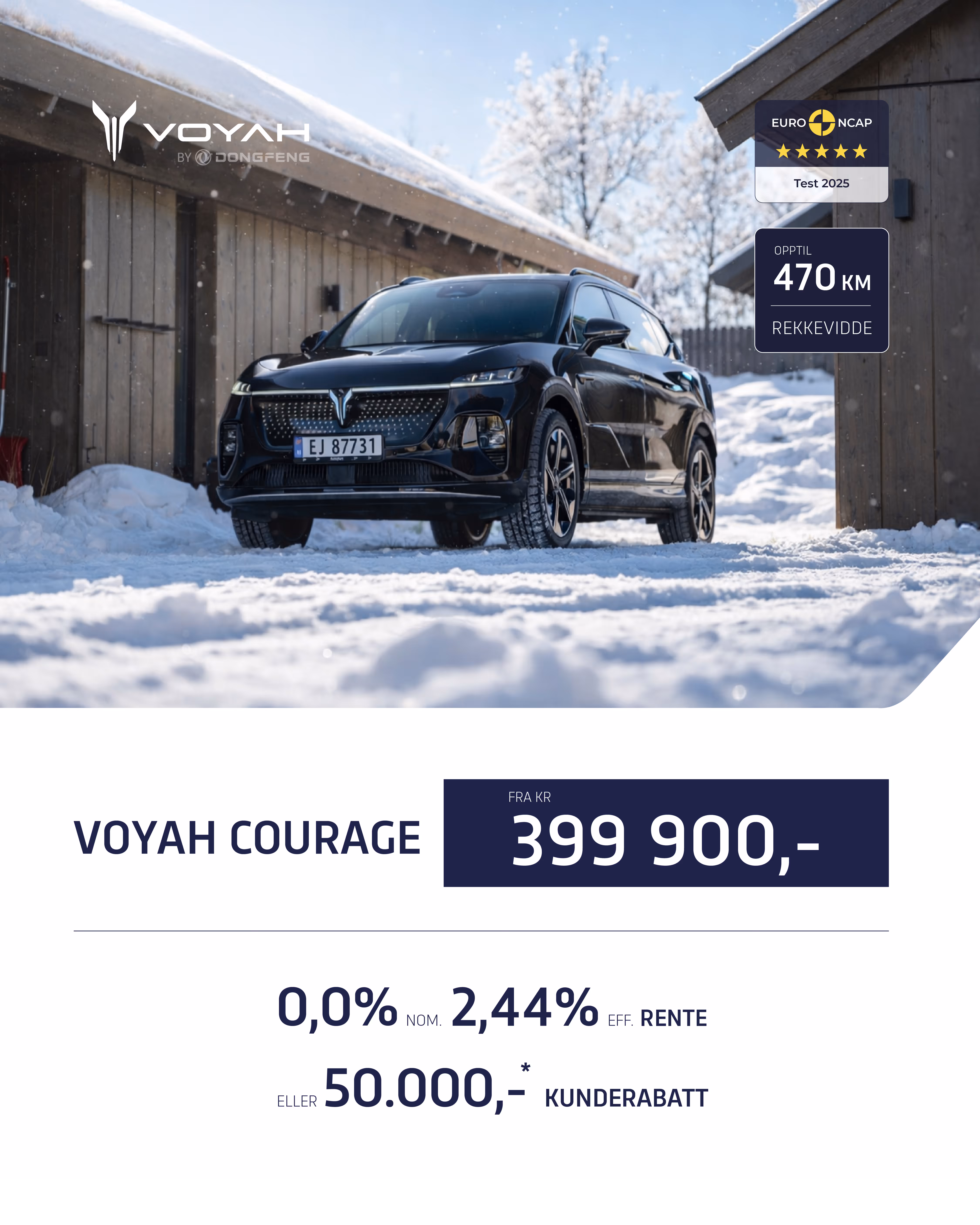 I mai 2025 oppnådde VOYAH COURAGE fem av fem stjerner i Euro NCAP, Europas mest omfattende sikkerhetstest.